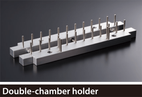 Using the double-chamber holder, stretch culturing in up to 12 stretch chambers at a time can be performed under identical conditions.